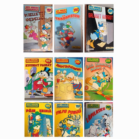 Aku Ankan taskukirjat yhteishintaan 10,-.