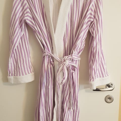 Vain pari kertaa päällä ollut XS/S kokoinen kylpytakki. Valmistettu 100 % puuvillasta, materiaali on imukykyinen ja pehmeä.