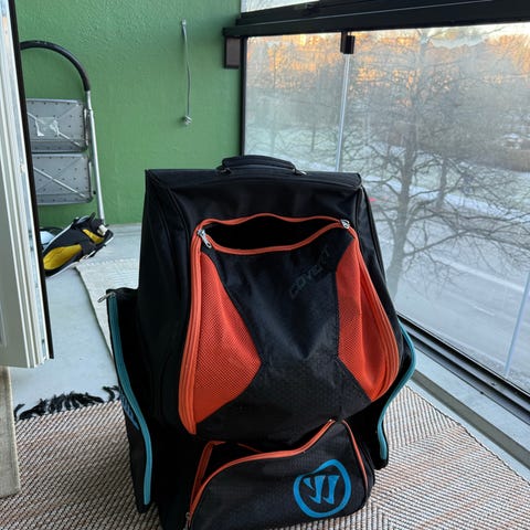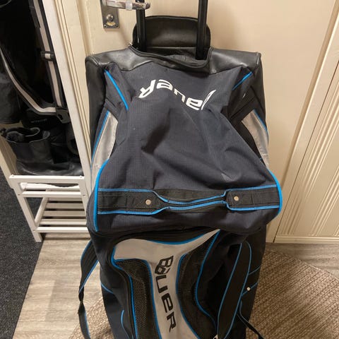 Bauer 950 jääkiekko varustelaukku mustana. Laukussa on vetoketjutaskuja ja kantohihnat. Sopii jääkiekkoilijan varusteiden kuljetukseen ja säilytykseen.