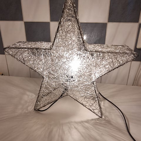80 cm halkaisijaltaan valkoinen paperitähti 2 metrin johdolla, jossa katkaisija. Toimiva 1 W LED-lampulla.