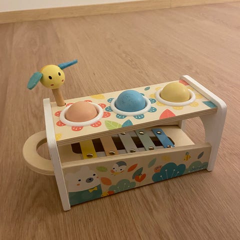 Ihana vedettävä kettu xylofoni soitin. Pidennetty vetonarua. Pieniä kulumisen merkkejä, mutta muuten hyväkuntoinen ja toimii kuten pitää. Tämä ollut meillä suosikkileluja. Tästä vaikka joululahja innokkaalle taaperolle!