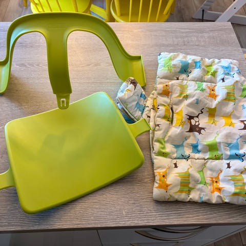 Myydään valkoinen Stokke Tripp Trapp baby set. Siisti käytetty kunto, ainoana moitteena tummentumat selkäosan takapuolella, mutta ne jäävät piiloon käytössä (ks. kuvat).