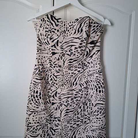 Rennon (casual) tyylinen, alaspäin levenevä malli. Mekko on paksummasta kankaasta ja siinä on abstrakti kuvio koko pinnalla. Sopii hyvin sekä arkikäyttöön että juhlavampiin tilaisuuksiin – kesällä sellaisenaan, ja kylmempinä vuodenaikoina esim. poolon tai paidan kanssa.