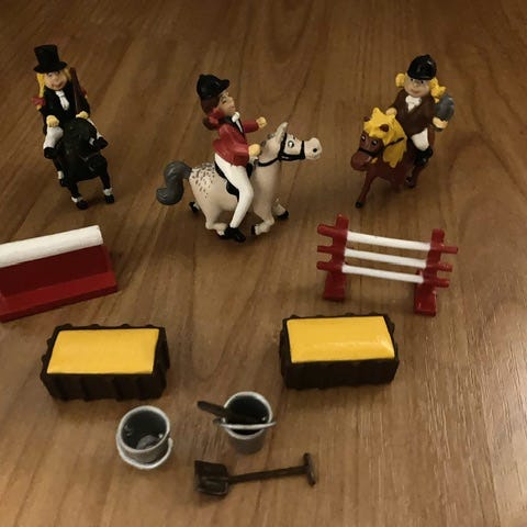 Löytyy myös lisäosa, 3 hevosta ratsastajineen + esteitä ( 29€).