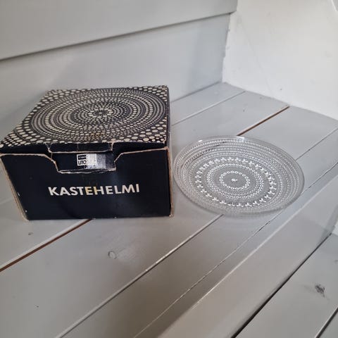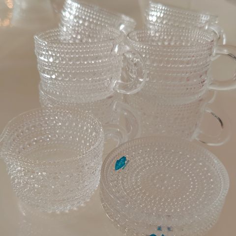Nuutajärvi Kastehelmi astiat. Hyvässä kunnossa ja vaikuttavat miltein käyttämättömiltä. Design Oiva Toikka.