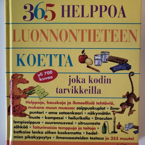Tutustu luonnontieteen perusteisiin tekemällä hauskoja ja opettavaisia käytännön kokeita. Selkeät ja helpot ohjeet. Kovakantinen kirja. 317 sivua. Kuin uusi, vaikka lahjaksi!