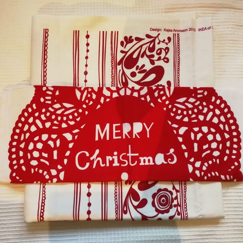 Käyttämätön ja pesemätön joulukangas. Päädyt ompelematta. Hyvää tukevaa kangasta.