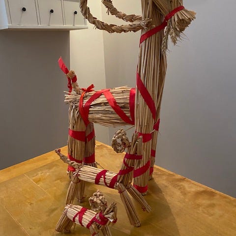Vanha, hyväkuntoinen olkipukki. Kork.60cm, pituus 50cm