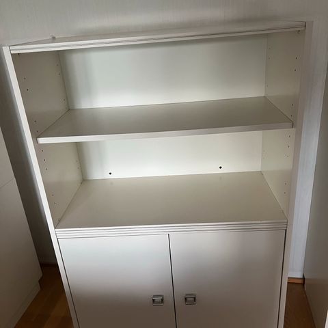 Siisti valkoinen peruskaappi, sopiva monenlaisiin astioiden, tavaroiden, tekstiileiden, kirjojen, papereiden tms. säilyttämiseen siististi hyllyille järjestettyinä.