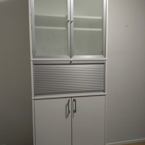 Kuusi hyllytasoa, joista neljää hyllyä voi siirtää tarpeen mukaan eri tasoihin. Säädettävät jalat, joten kaapin voi sijoittaa kaltevalle lattialle.