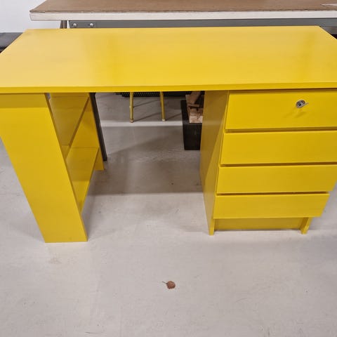 Tyylikäs vintage työpöytä. Ajattoman pelkistetty muotoilu ja kauniit mittasuhteet tekevät tästä erinomaisen työpöydäksi, sivupöydäksi tai esimerkiksi keittiön apupöydäksi. Pöydässä on laatikoita sekä kaappi säilytystä varten.