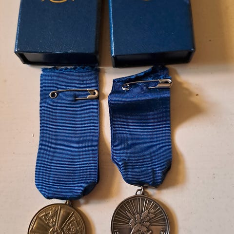 Suomen Valkoisen Ruusun ritarikunnan mitali alkuperäisessä kotelossaan.