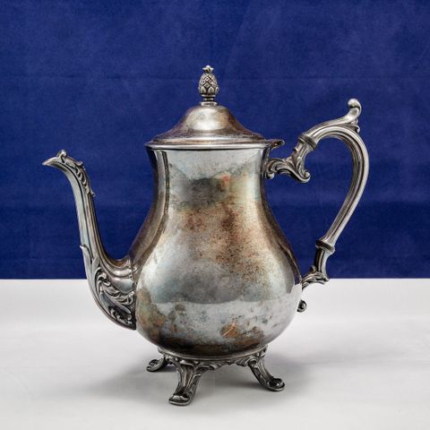 Kannu on kulunut ja siinä on näkyviä naarmuja sekä pieniä kolhuja. Vihreässä kahvassa on kulumaa, ja sisäpuolella on selkeitä merkkejä käytöstä. Yleisilmeeltään kannu on kuitenkin ehjä ja käyttökelpoinen.