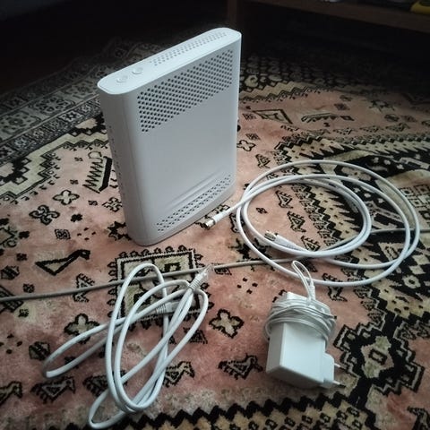 Laitteessa takuuta jäljellä vielä 19.4.2026 asti. Laitteen mukana tulee myös kaikki pakettiin kuuluva eli käyttöopas, virtajohto ja adapteri, antennijohto ja datajaotin, ethernet-johto sekä turvallisuusohjeet.
