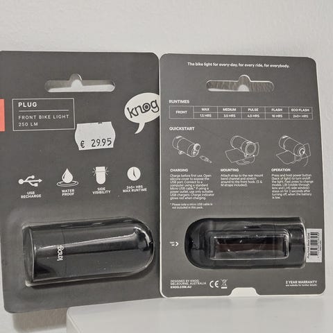 Etuvalo 200 lumen. Takavalo 100 lumen.