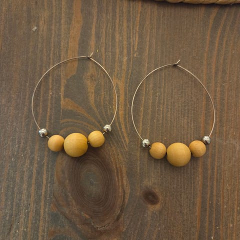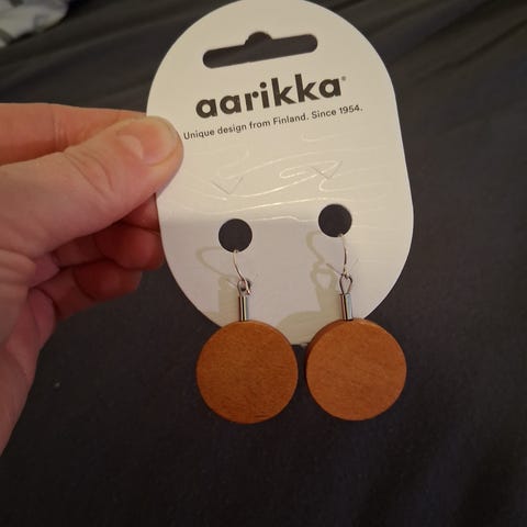 Hyväkuntoiset Aarikan vihreän sävyiset vanhat puiset korvakorut.