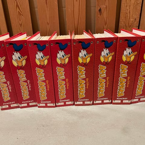 Aku Ankan kansioihin koottuja vuosikertoja, vaihtelevilla aikaväleillä vuosilta 2001-2004, 2008, 2010-2012. Yhteen kansioon mahtuu n. 40 yksittäistä sarjakuvalehteä. 5€/kansio. Akkarit kiertoon!