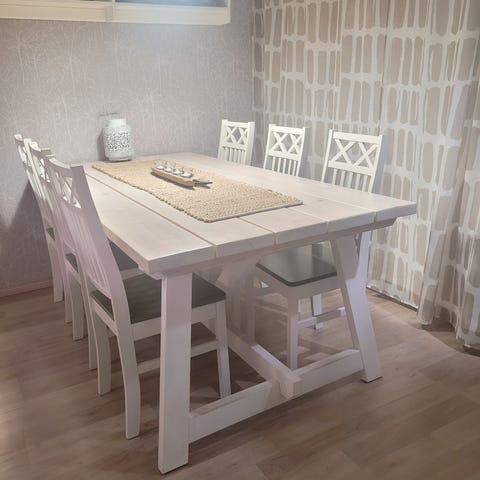 Myydään hyväkuntoisia ruokapöydän tuoleja. Malli Asko Dylan. Osassa tuoleista näkyvissä käytön jälkiä. Hinta 10e/kpl. Kuusi tuolia myynnissä. Vain nouto.