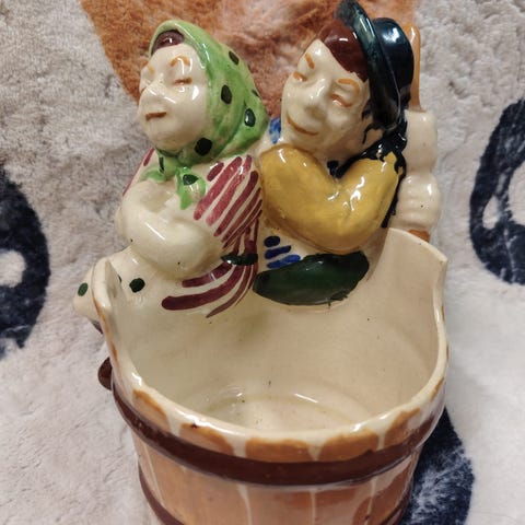 Hyväkuntoinen vintage-figuuri, jossa vain vähäistä ajan patinaa.