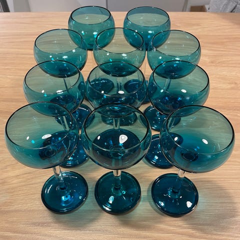Riihimäen lasi, Nanny Still, 1950-luku, liköörilasi, ”Harlekiini”, Vintage, Design, vihreä lasi, taidelasi, kattaus, juhlakattaus, uniikki, lasi