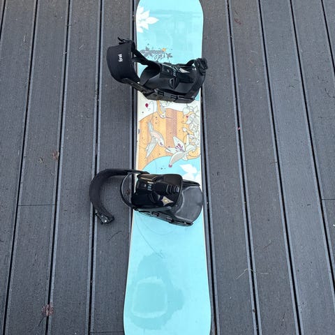 142 cm pitkä ja kevyt lauta.Meille pieneksi jäänyt ja pari talvea ollut varastossa.Paljon laskettu ja käytönjälkiä on, mutta vielä laskee hyvin.