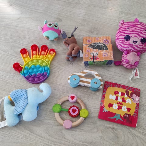 Palloon ja junaan voi laittaa patterit jolloin kuuluu ääni.
