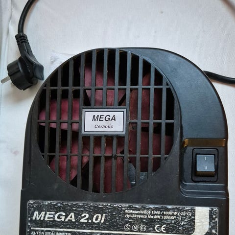 Mega lämpöpuhallin 1,4i / auton sisätilan lämmitin, 1320W. Lev.18cm, syv.22cm, kork.9cm. Johdon pituus 0,6m. Max +25•c. Kaksi tehoaluetta. Valkoisia maalin roiskepisaroita päälikuoressa, kts.kuva. Täysin kunnossa oleva, myynti tarpeettomana. Postitan kuluja vastaan. Katso myös muut ilmoitukseni.