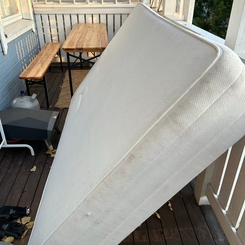 Ollut ala-aste ikäisellä pojalla ja ei ole käyttänyt petauspatjaa. Jäljet ovat näkyvissä. Imuroitu tekstiilipesurilla tänään. Muutoin hyväkuntoinen.