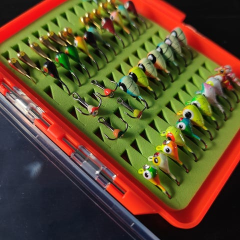 Kuvissa näkyvät uudet/uudenveroiset mormyskavavat 3 kpl. Uudet siimat puolattuna valmiiksi ja 6 kpl uusia morreja mukaan.