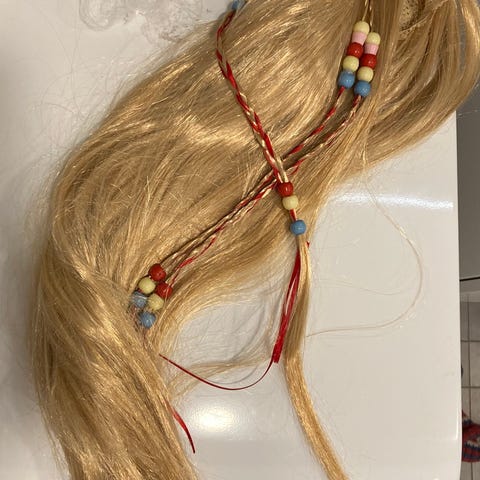 Vaalea pitkähiuksinen peruukki. Uusi. Aidonnäköinen kuituhius peruukki. Hiusten pituus 60 cm. Säädettävä. Nouto tai postitus. Ei toridiiliä.