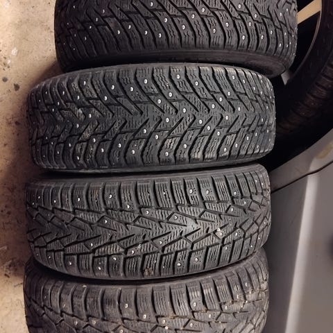 Käytetyt nastarenkaat avensiksen alta! Pintaa n.5-6mm ja 90%nastoista tallella