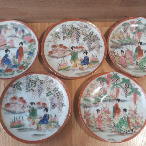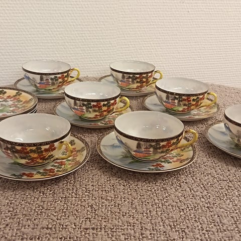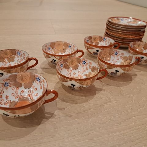 Myydään kuvassa näkyvät Japanilaiset teekupit ja tassit + sokerikko ja kermakko.