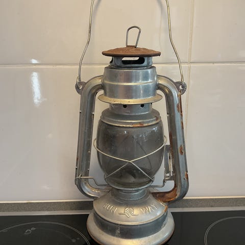 Valopetroolilyhdyt, korkeus 24 sininen/25.5 cm, valmistettu Saksassa. Yhteishinta