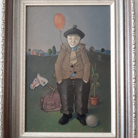 Tamperelaisen kuvataiteilija Timo Meresmaan piirtämä Akseli Gallen Gallelan taulusta jäljittämä taulu. Öljyvärimaali, kehykset lehtikultaa. Korkeus 51 cm, lev. 44 cm kehysten kanssa. kehysten leveys 4cm. Aidon tuntuinen.
