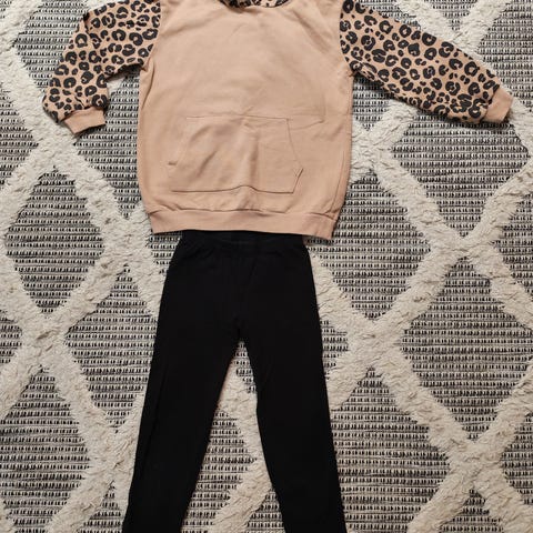 H&M huppari leopardikuviolla 122/128cm + Peuhu mustat leggingsit 130cm