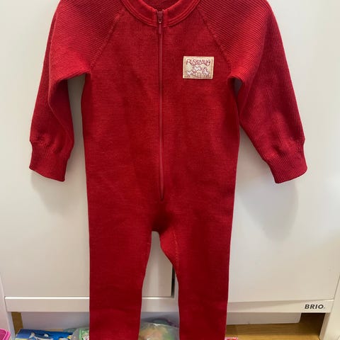 Myynnissä kuvien mukainen Ruskovillan villahaalari. Made in Finland. Tällä kyllä tarkenee. Koko 90. Meillä ollut käytössä 86-92 kokoisella pojalla.