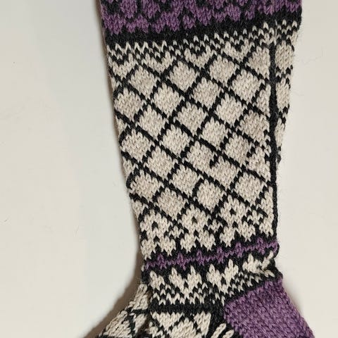 Myydään uudet pitkävartiset kirjoneulesukat.