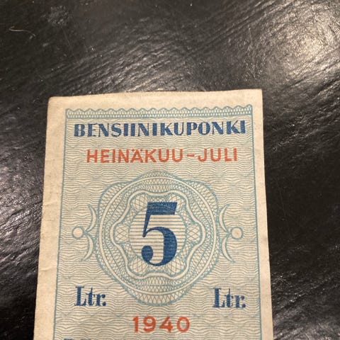 Bensiinikuponki heinäkuu - juli 20 Ltr. 1940. Voin postittaa postikuluja vastaan.