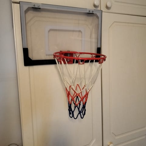 Hyväkuntoinen koripallokori oveen. Helppo kiinnitys.