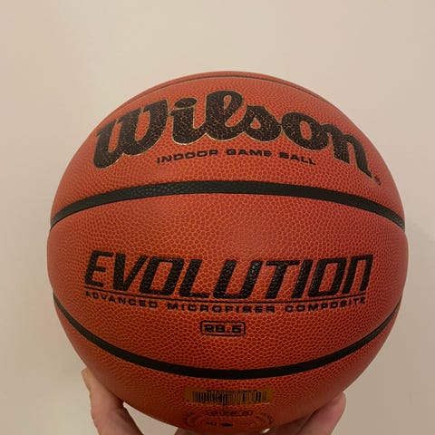 Wilson Solution koripallo, punainen väri, koko 7. Laadukas pallo korisharrastukseen. Pallossa tussilla tehty nimi, joka ei todennäköisesti lähde pois.