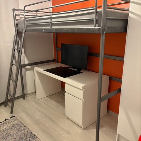 Myydään 2 Ikea Svärta parvisänkyä, toisessa on pöytälevy ja toisessa ei (kuvassa).