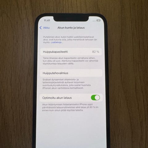 Apple iPhone 12 64 Gt + kuoret läpinäkyvä. Tarvikenäyttö joka ei tue Face ID:tä. Muuten puhelin toimii normaalisti. Akku 83%.