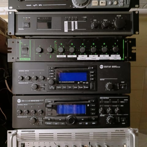 Kuvan toimiva vahvistin. Ei kaukosäädintä. Päällä vähän käytönjälkiä.