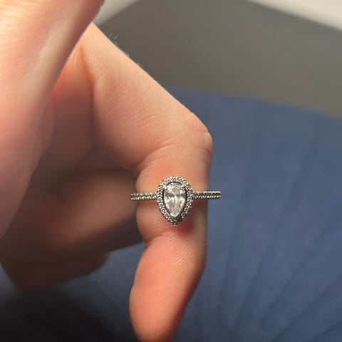 Pandora sormus kullatusta materiaalista, suunniteltu naisille. Sormuksessa on sydämen muotoinen koriste, joka on näkyvissä kuvissa. Sormus toimitetaan alkuperäisessä Pandora-laatikossa. Takana hieman kulumaa toki ei näy edes kamerassa. Koko 16.5