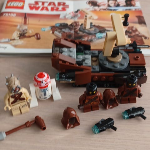 Osasta puuttuu pieniä osia ja osasta ukkeleita. Mutta kiva setti leikkeihin tms.