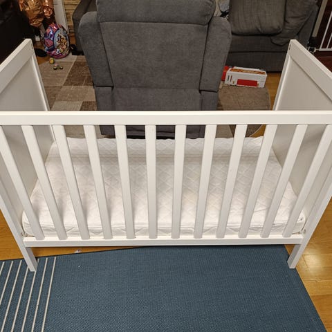 GULLIVER Cot + Sensillo Baby Mattress + 4 Mattress Covers + Double-Sided Baby Fabric Book – White Safe, practical cot with adjustable base and removable long side. Medium-firm, double-sided mattress with Visco, polyurethane, and latex foam. Removable cashmere cover, machine washable. Certified OEKO-TEX and PZH.