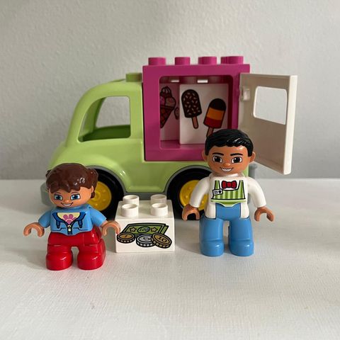 Tämä lienee kokoelma erilaisia Lego dublo -settejä: jäätelöauto, jäätelöt, banaaniterttu, tyttöukkeli ja muutama muu palikka. Meillä ainakin jäätelöt olleet superhitti lapsilla kun ovat kiertäneet perheenjäseniä kysellen millaista jäätelöä kukin haluaa.