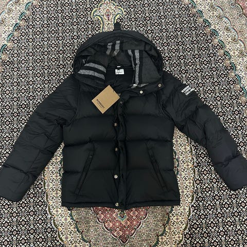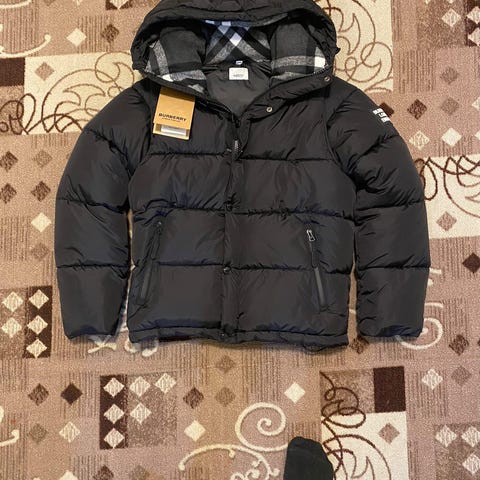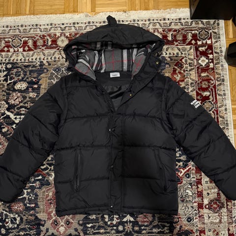 Burberry takki, koko M, musta väri. Miehen ulkotakki, jossa Burberryn tunnistettavat yksityiskohdat.