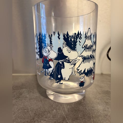 Muurlan lasinen Muumi Talvimetsä -kynttilälyhty. Mitat kuvassa. Käyttämätön.