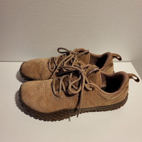 Merrelin mokkanahkaiset jämäkämmät paljasjalkakengät.